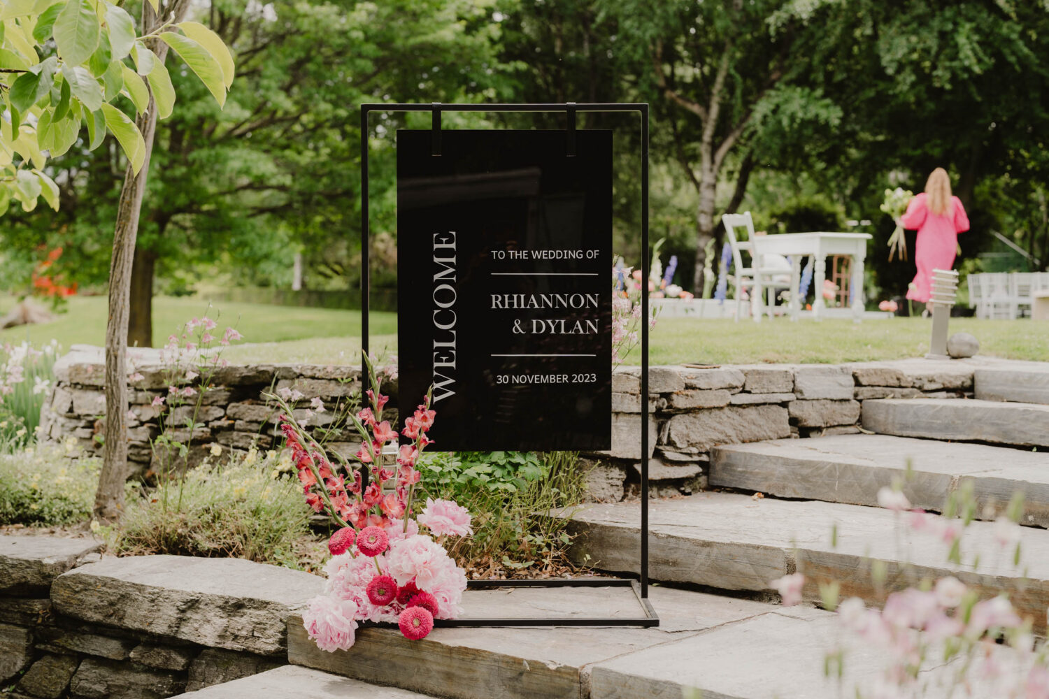 This modern and elegant sign is the perfect way to greet your guests as they arrive to your wedding. They come customised with your names and wedding date.
