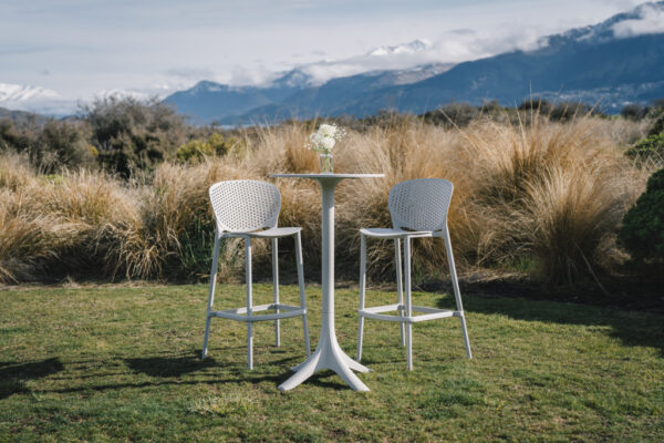 Use our bar leaners / cocktail tables to create extra socialising spaces – keep them as standing room only or match with our bar stools for additional seating as well. Dress them up with candle light and floral accents for an even more beautiful space.