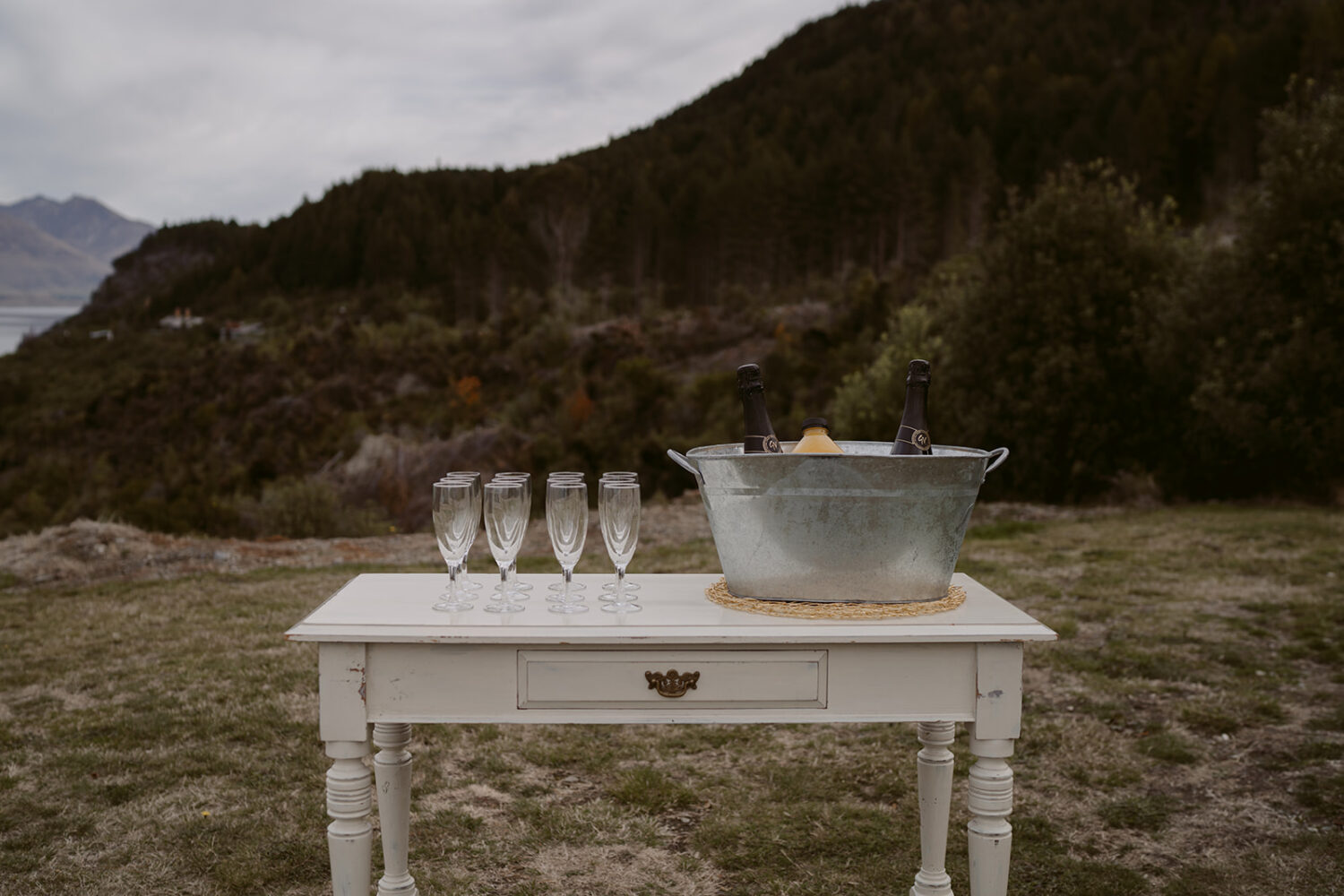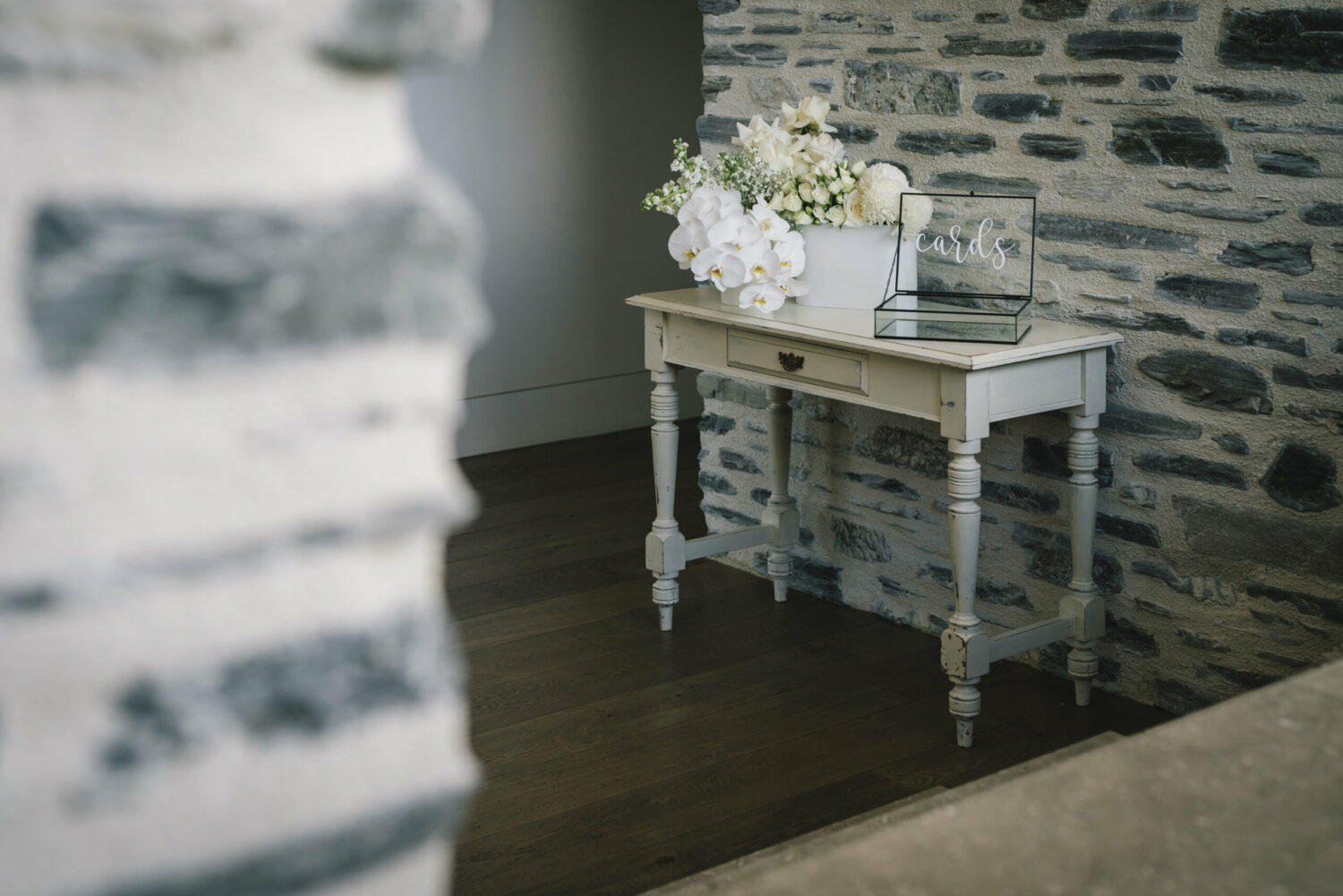 Our white vintage wooden desk is a fantastic option to use for your signing table, cake table or guest book table.