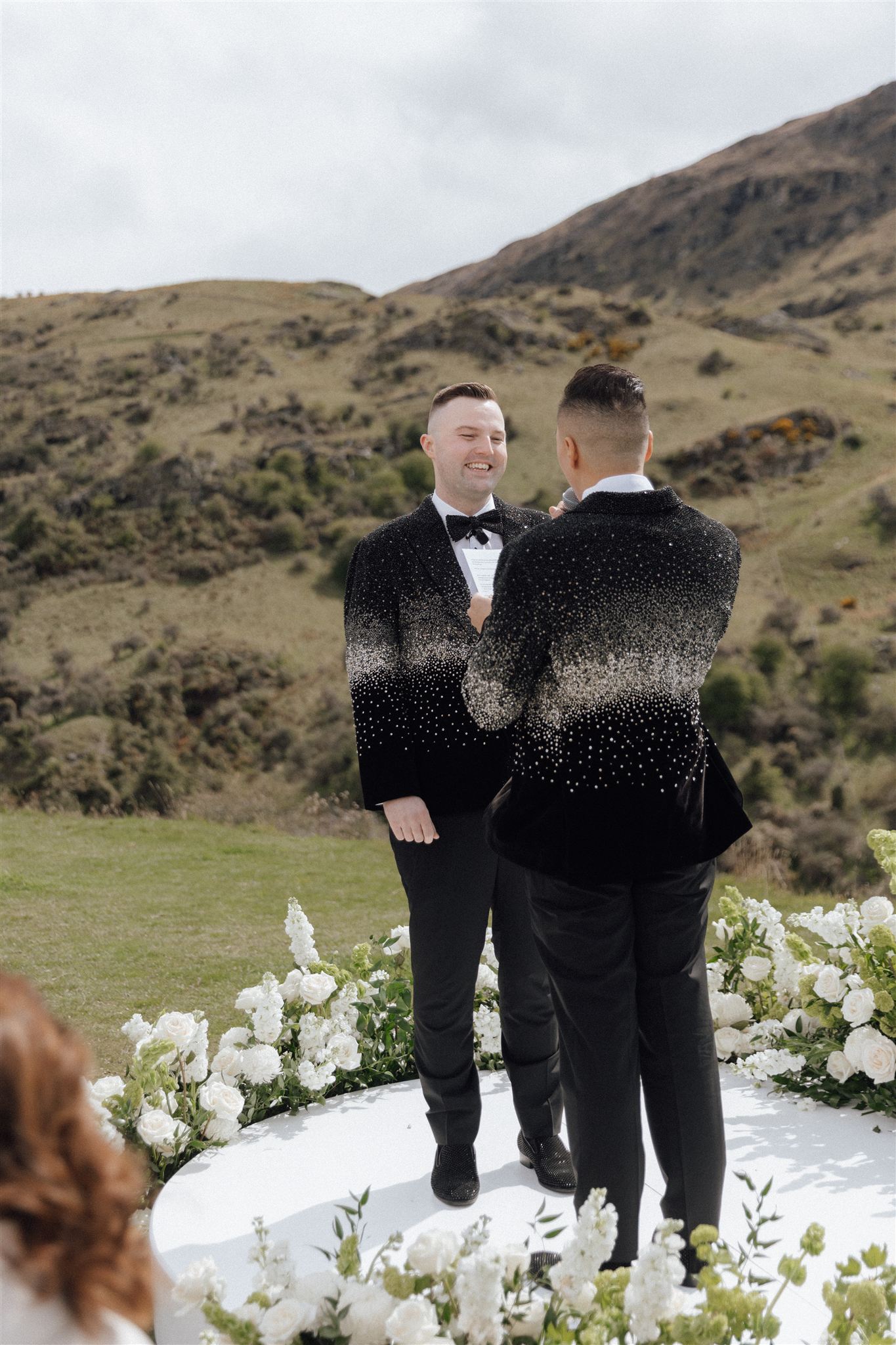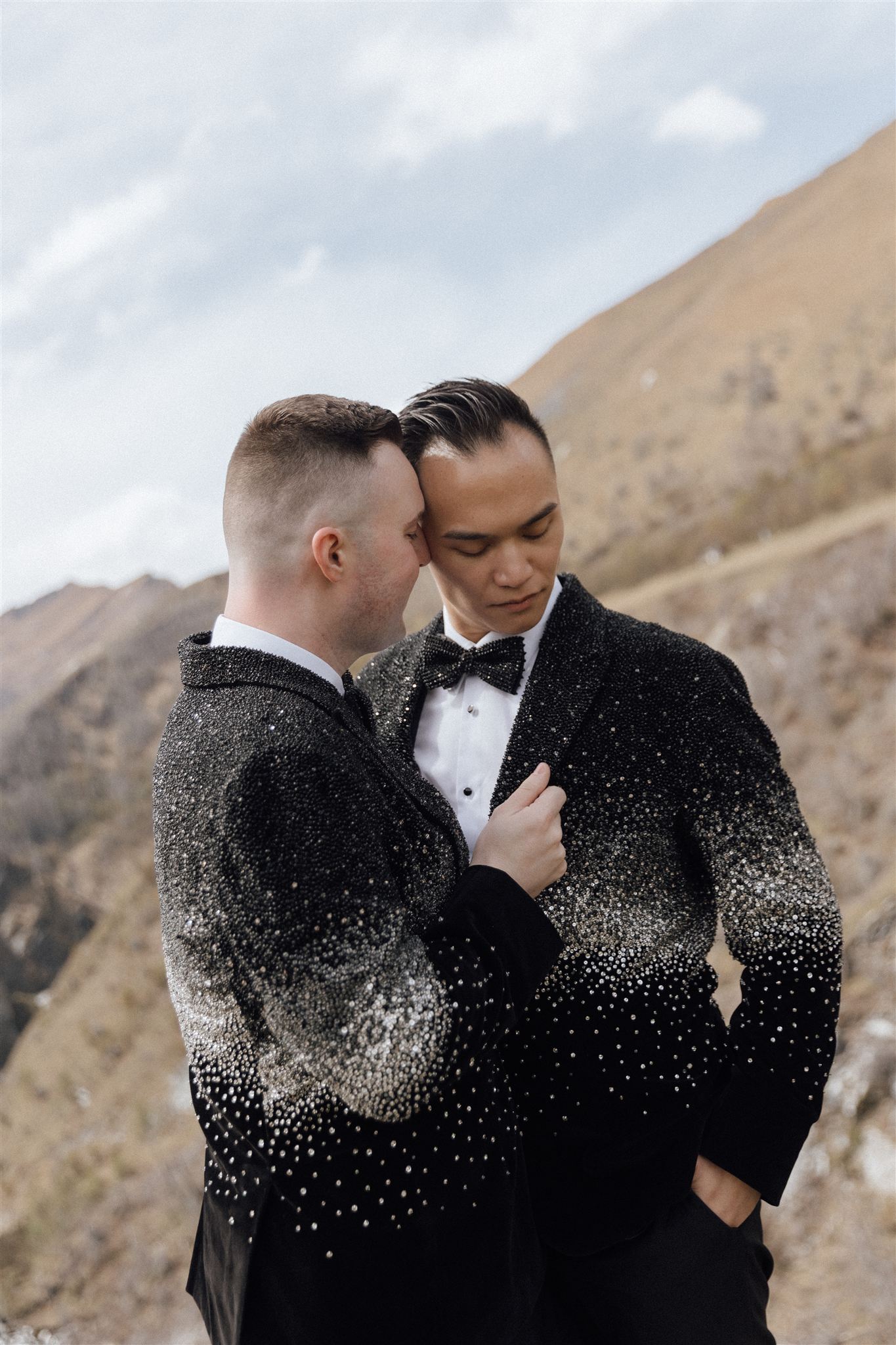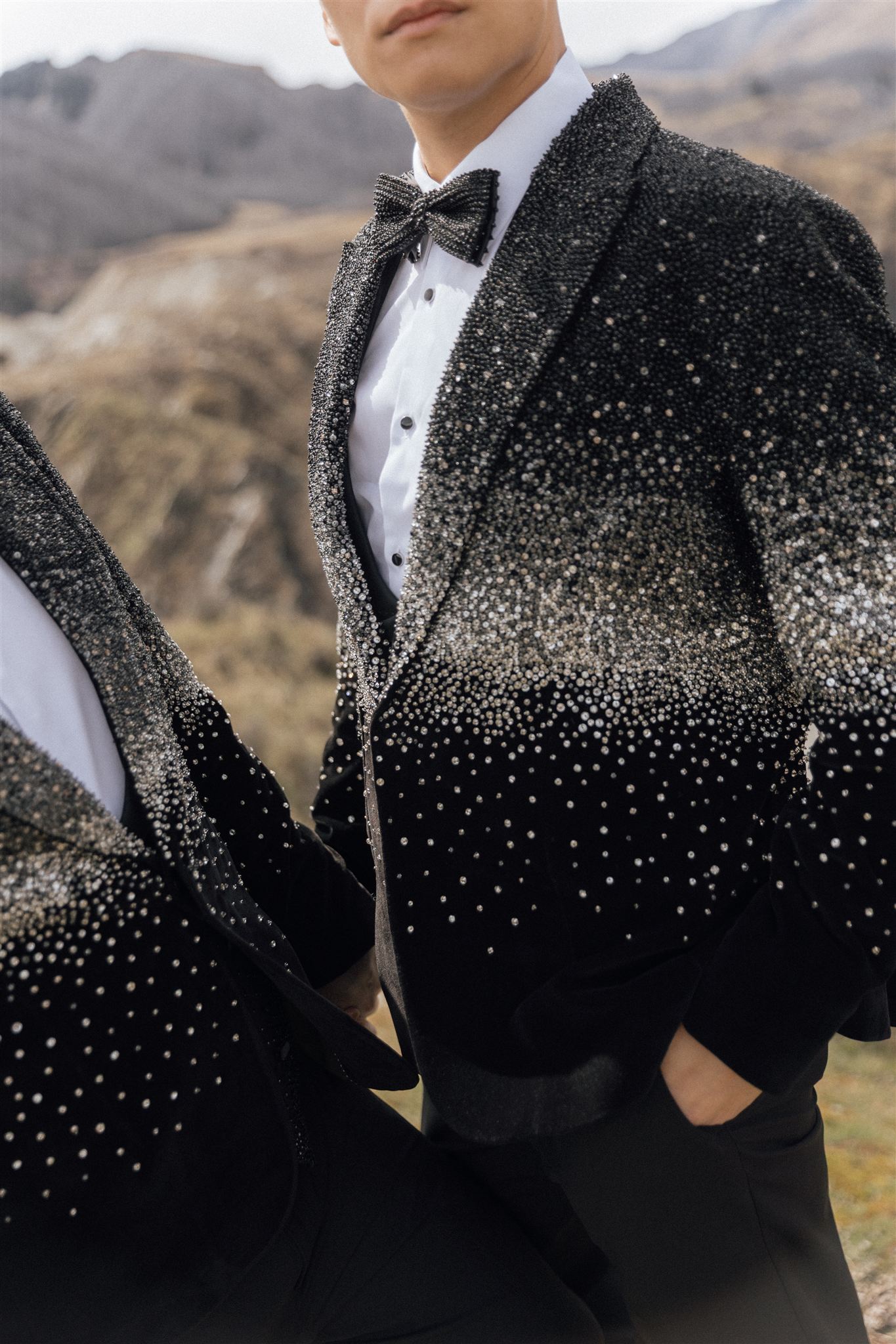 Nia & Sean travelled from Australia to get married in New Zealand – and they did it in style. They wore custom Swarovski crystal jackets that took five months to create, turning their wedding look into pure statement fashion from the very first moment.