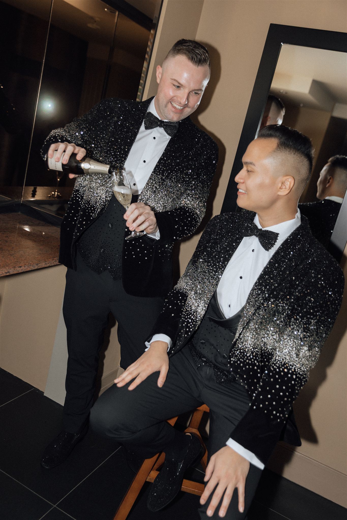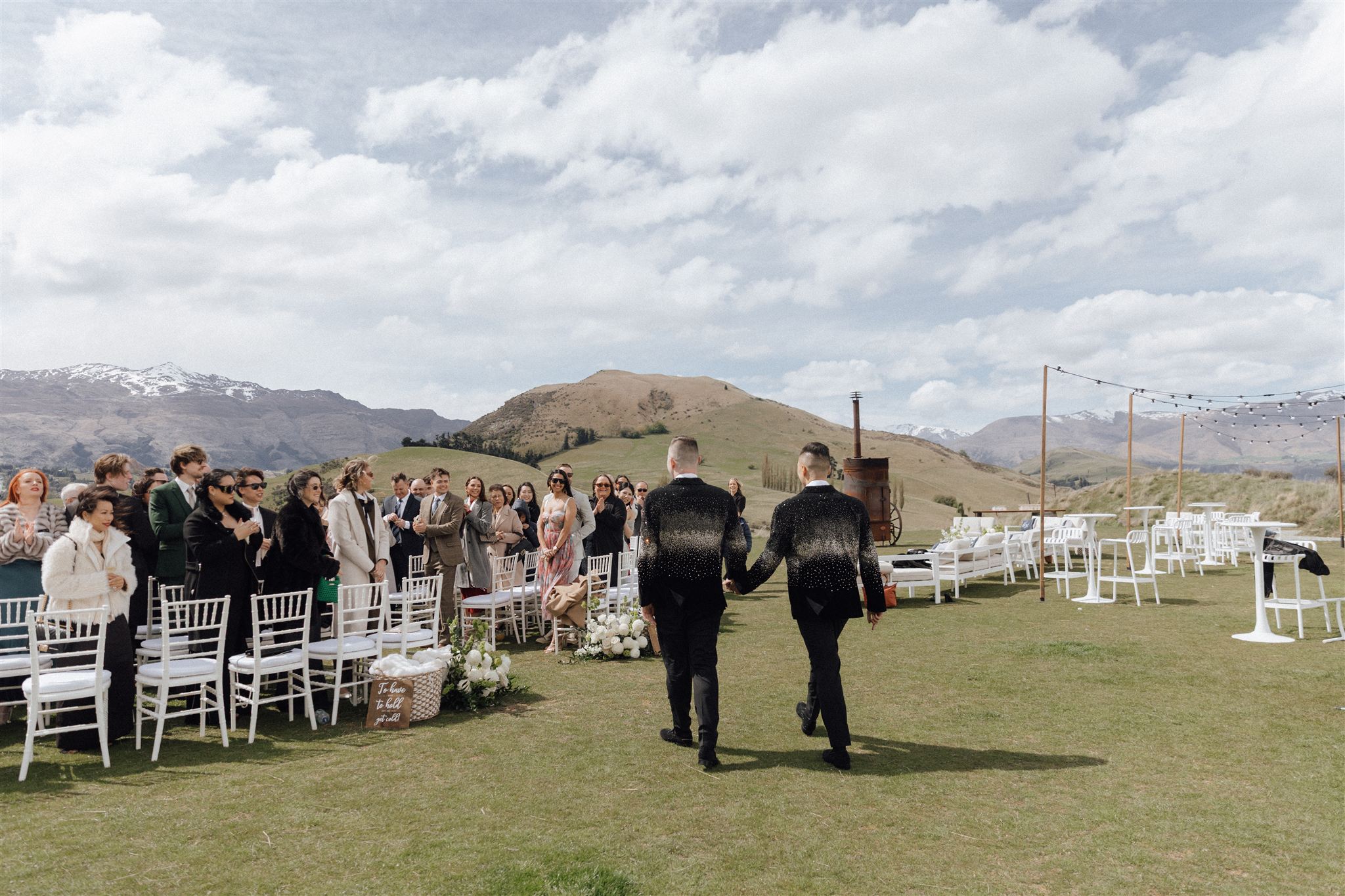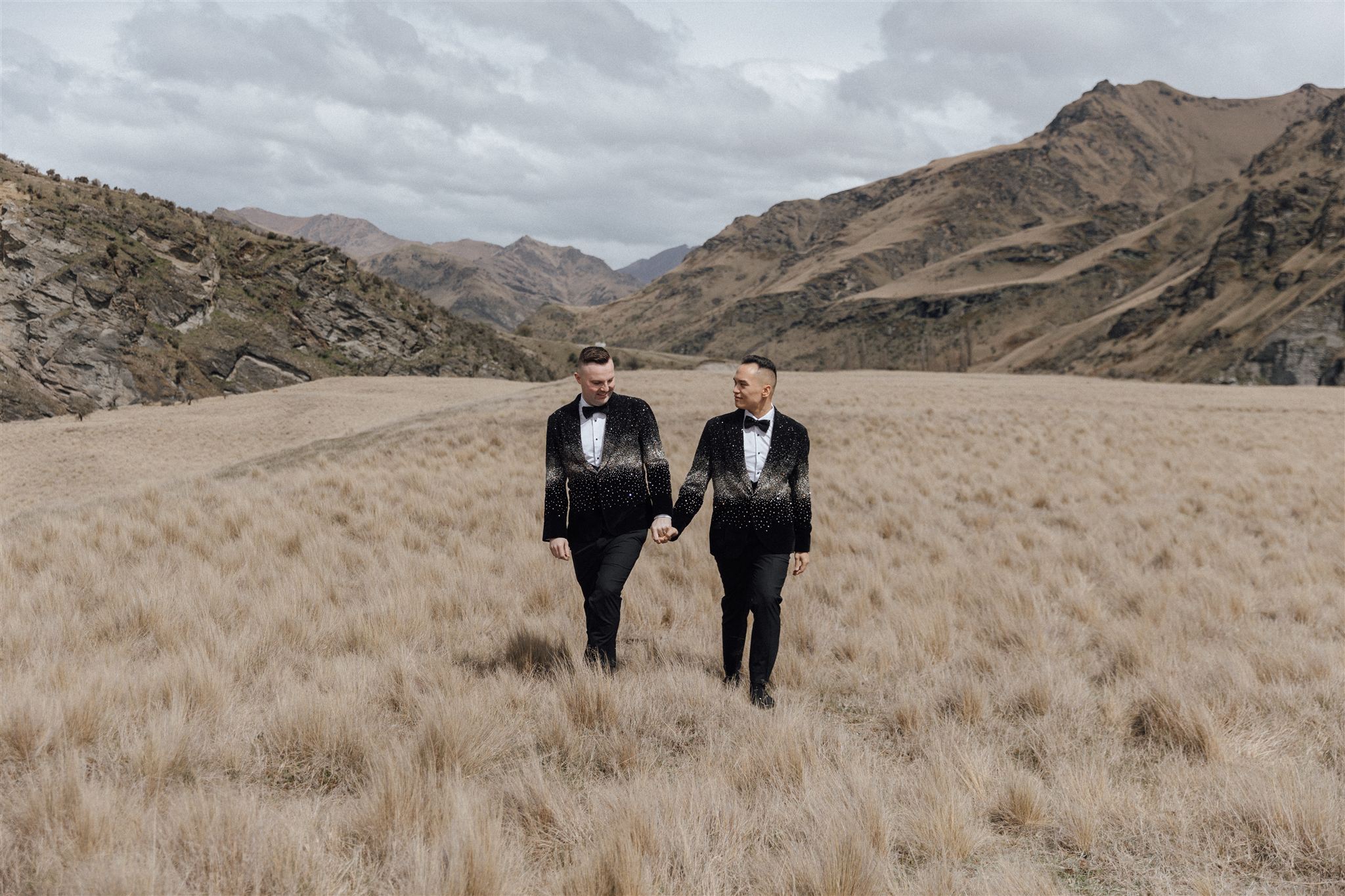 Nia & Sean travelled from Australia to get married in New Zealand – and they did it in style. They wore custom Swarovski crystal jackets that took five months to create, turning their wedding look into pure statement fashion from the very first moment.