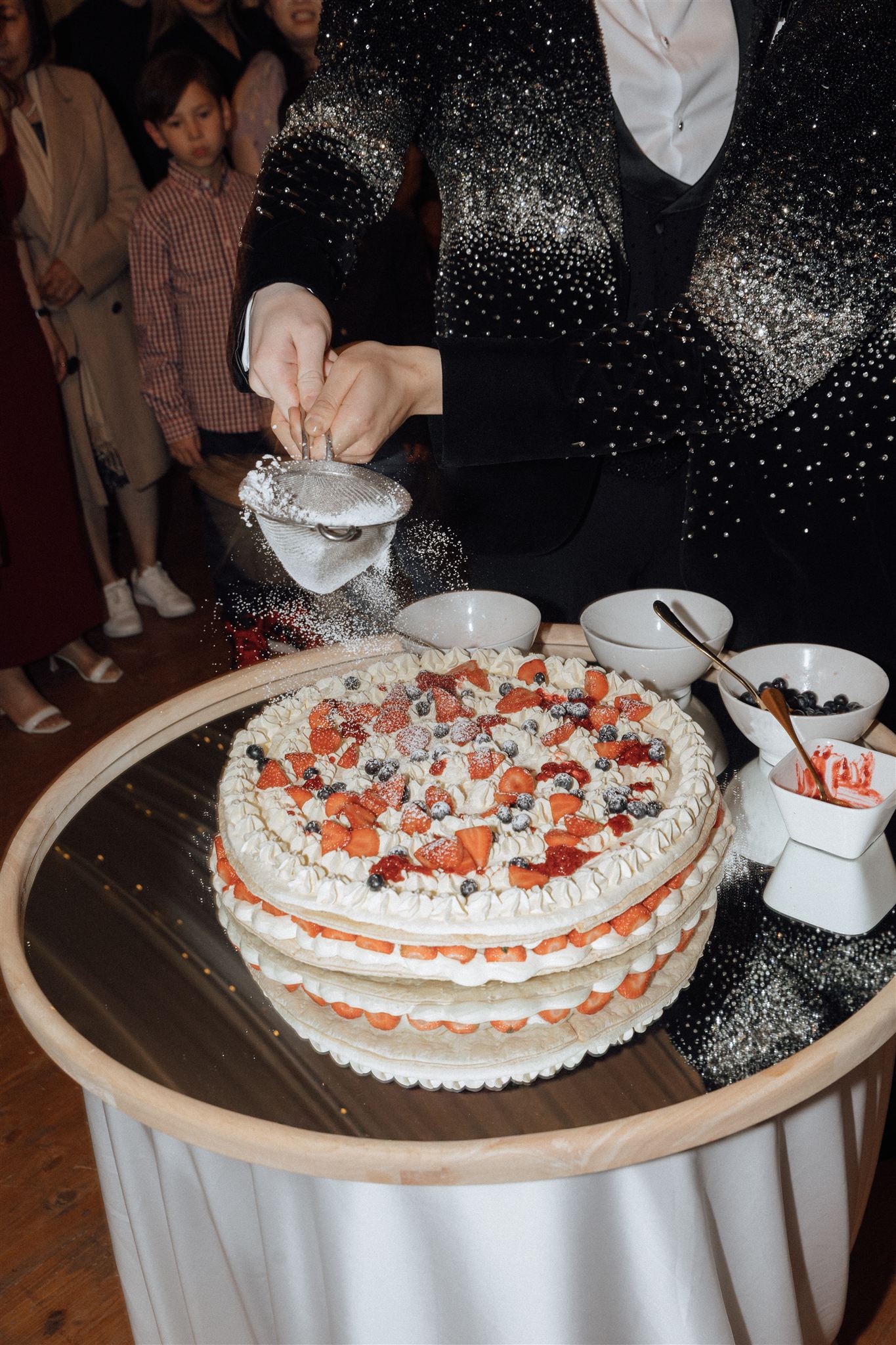 At the centre of the dance floor sat their handmade feature – a Millefoglie cake they decorated themselves with berries and sugar before cutting into it to enjoy.