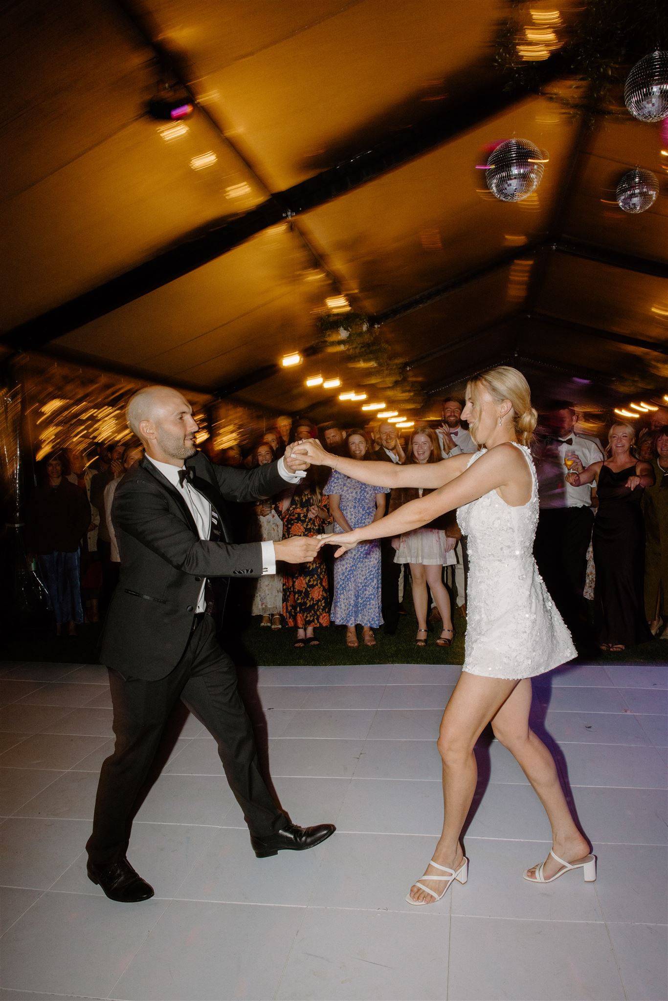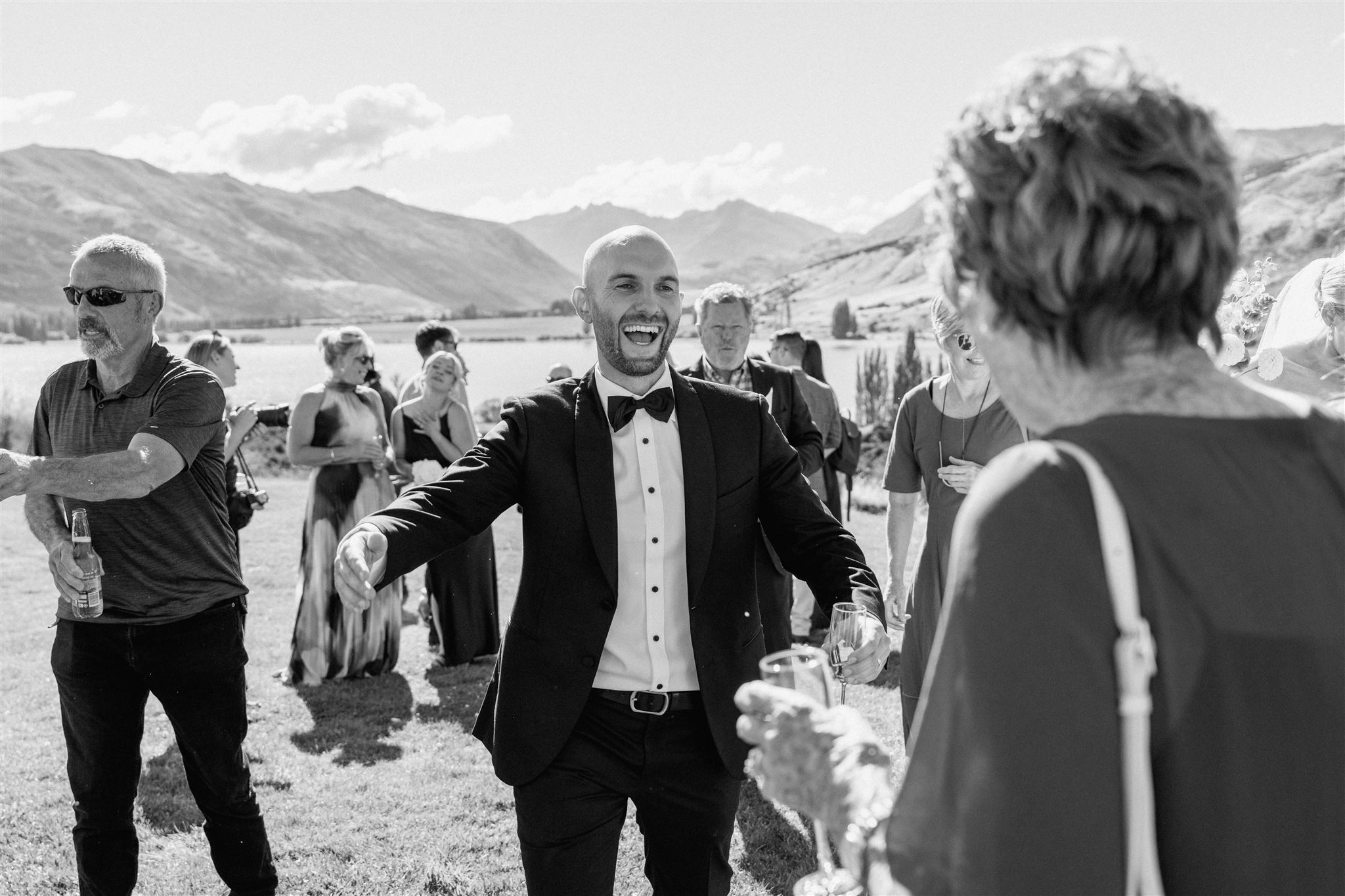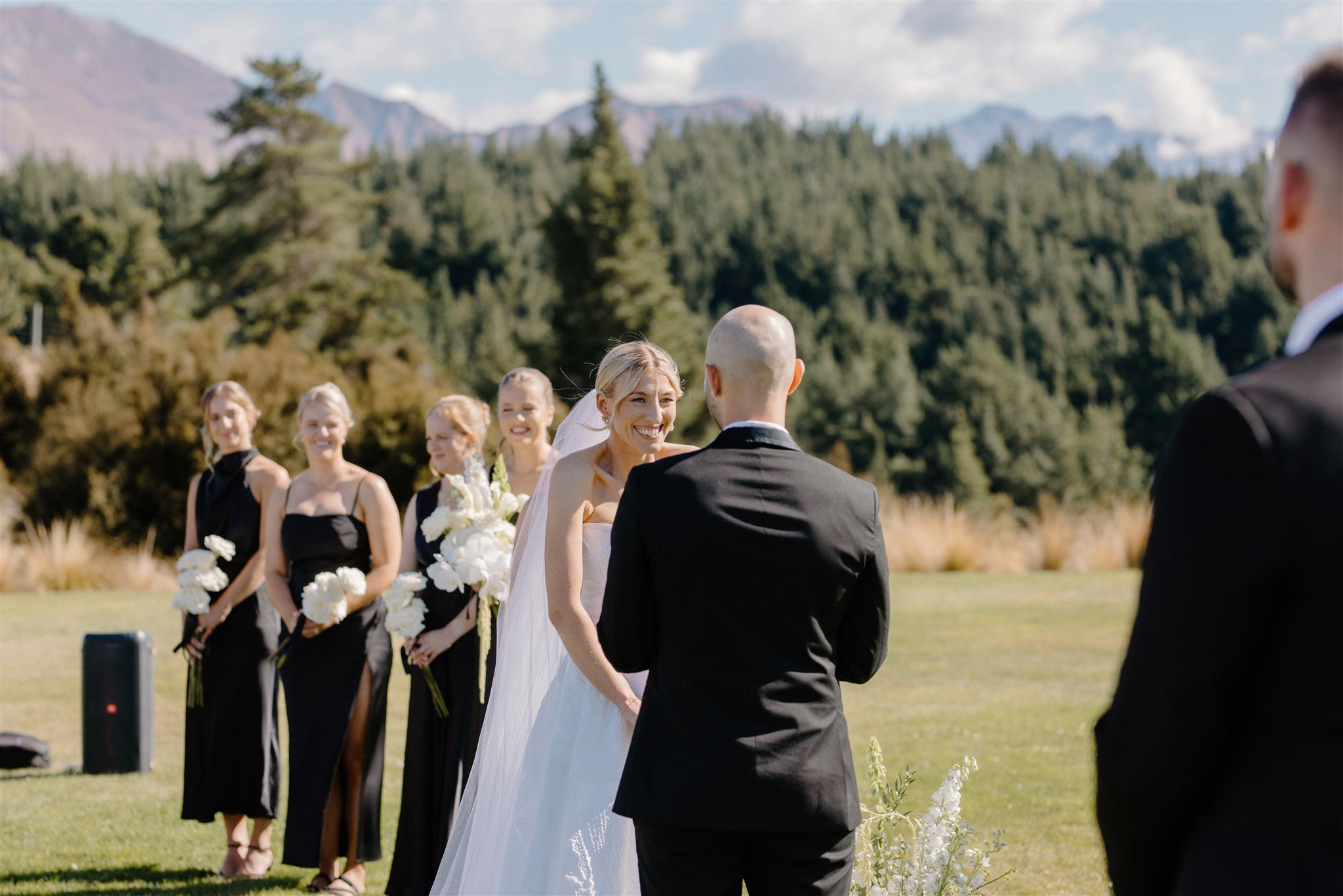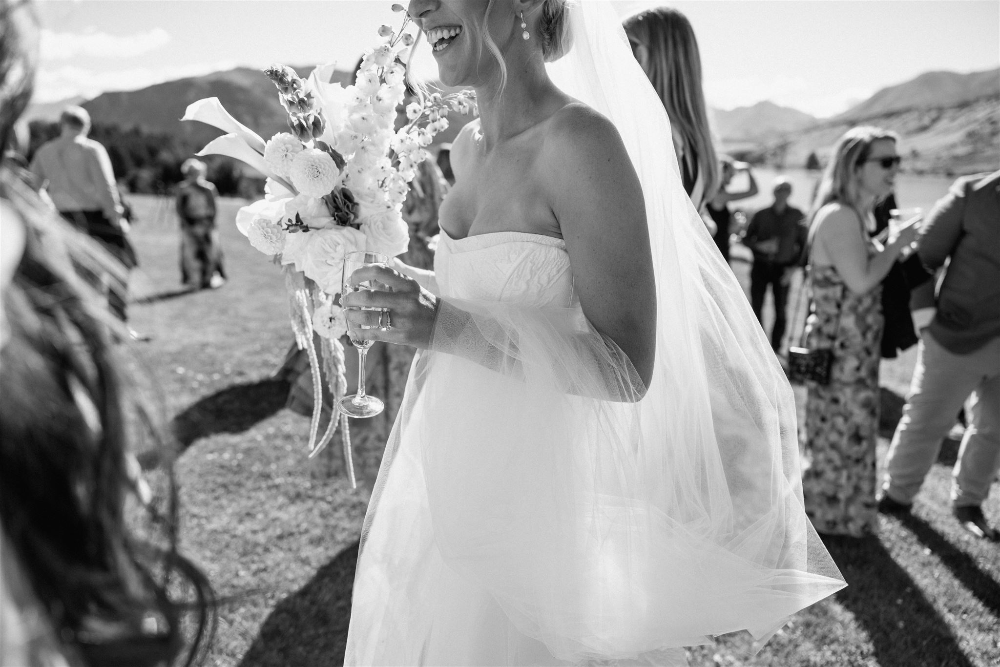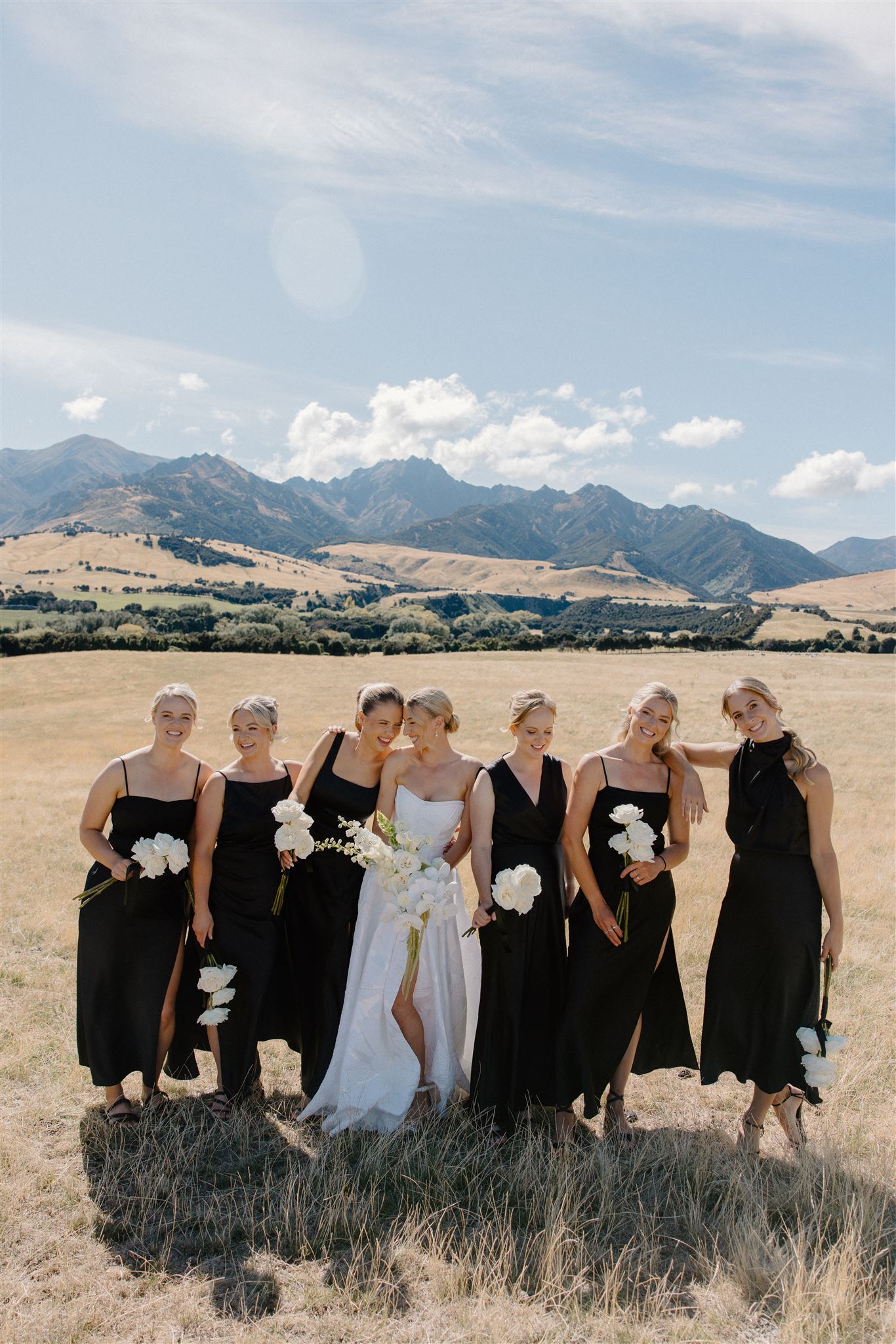 The dance floor was its own kind of magic – disco balls sparkling overhead, a packed marquee full of good vibes, and champagne popping off like fireworks. One of our favourite behind-the-scenes moments? The photographer getting absolutely drenched in bubbly while Wedd Films NZ ducked behind them for cover. If that doesn’t scream party of the year, we don’t know what does.