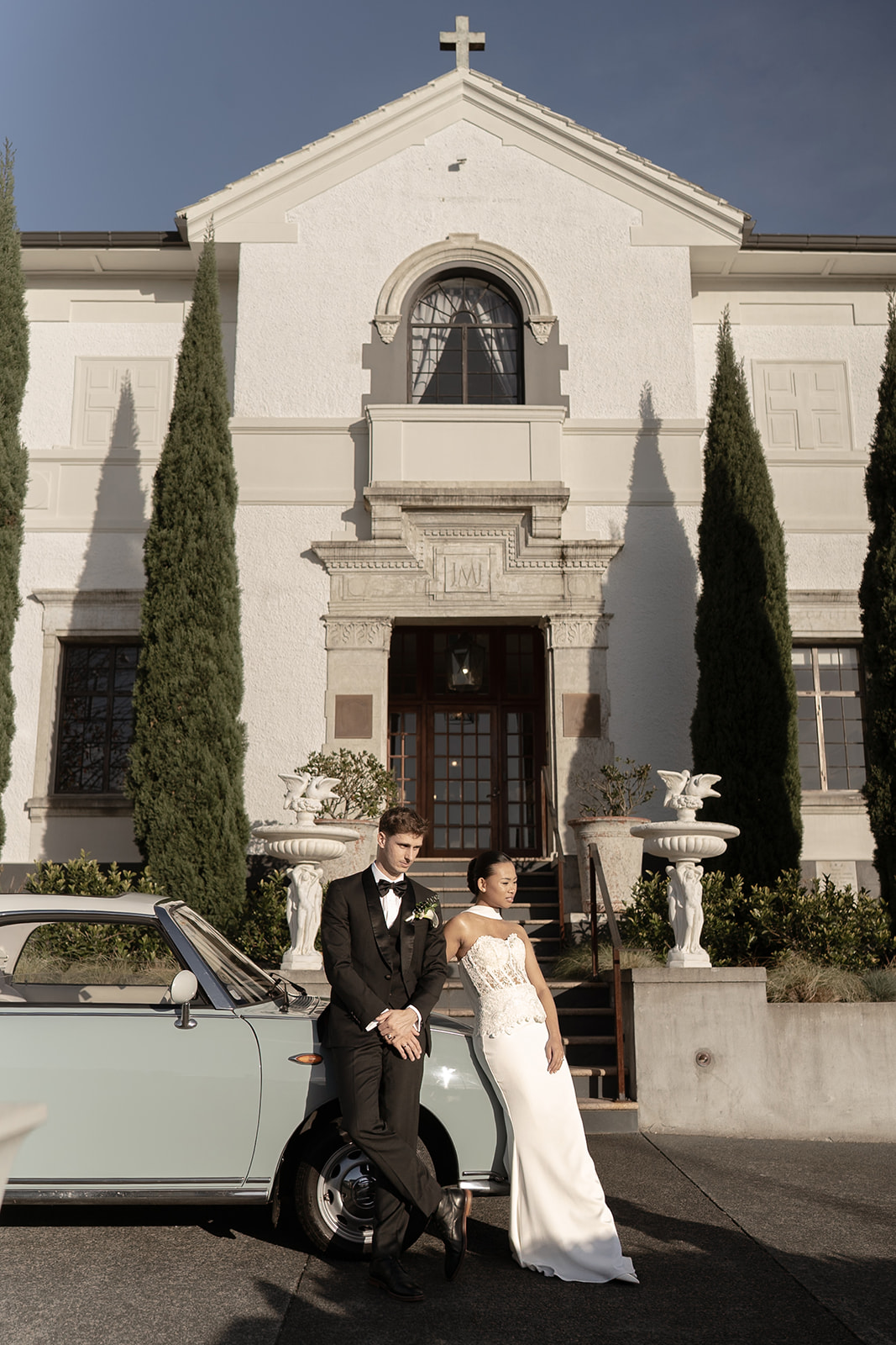 Tatya looked radiant in her lace gown as she and Dion shared tender moments that felt both elegant and authentic. The day flowed into golden afternoon light, with cinematic portraits captured against the hotel’s striking façade and a vintage blue car – perfectly blending history with modern romance.