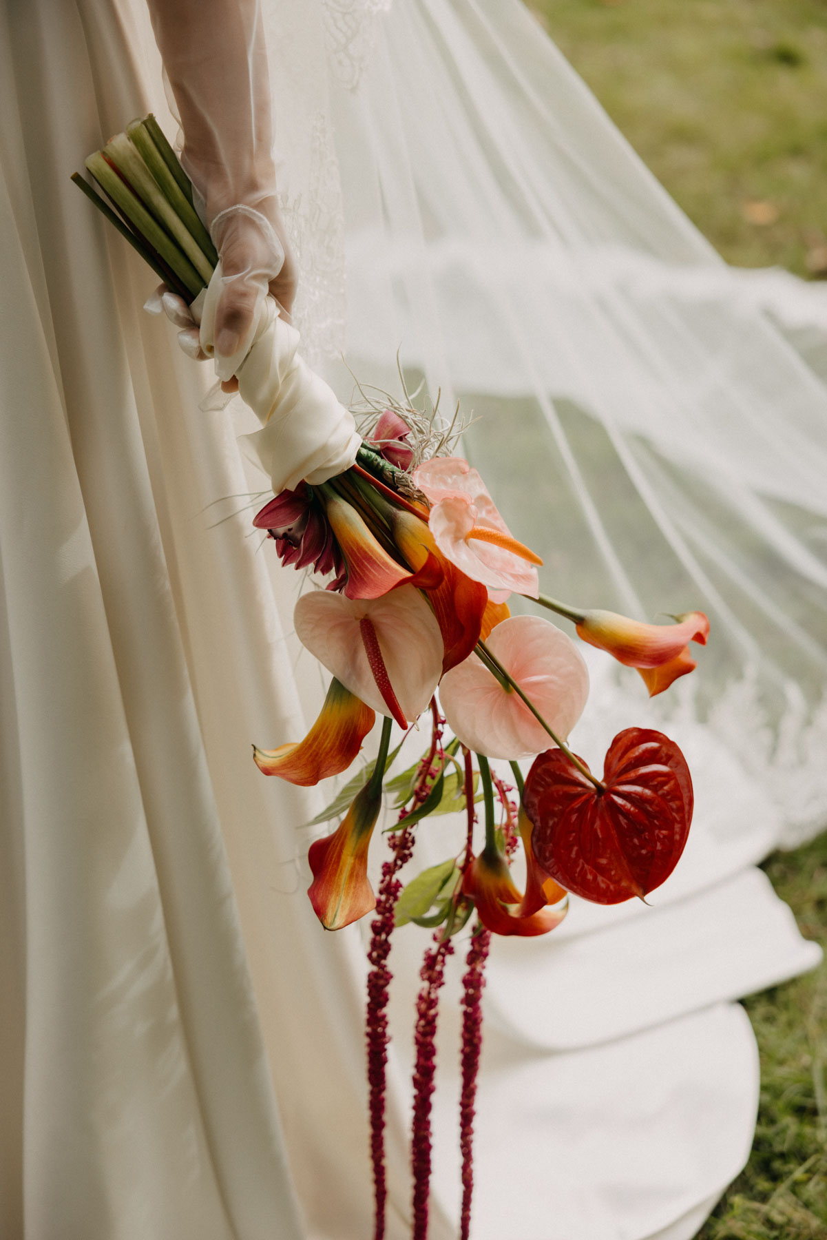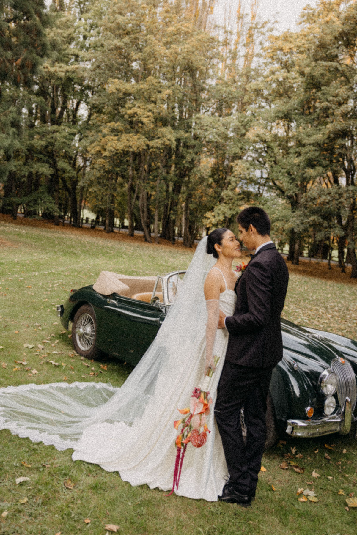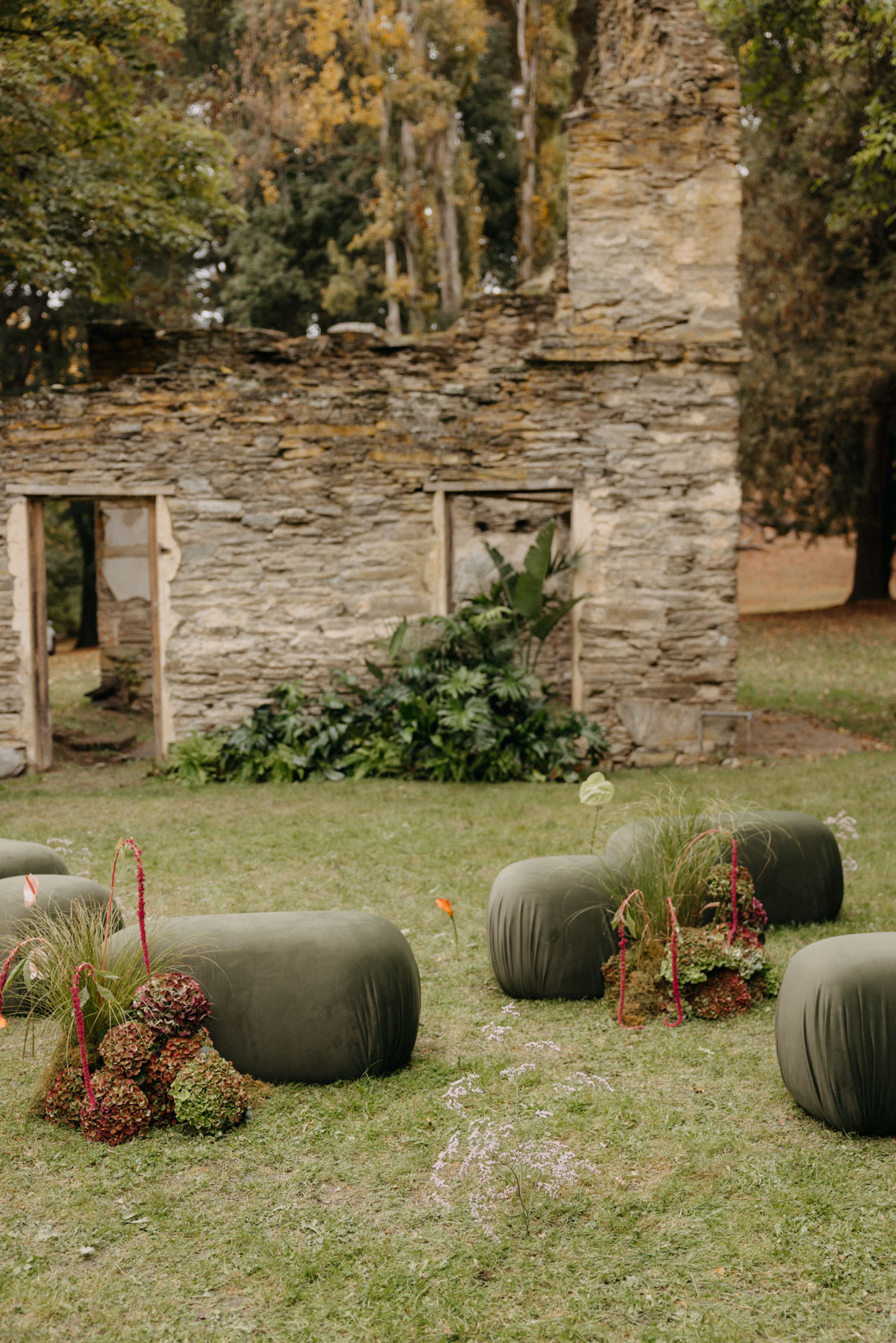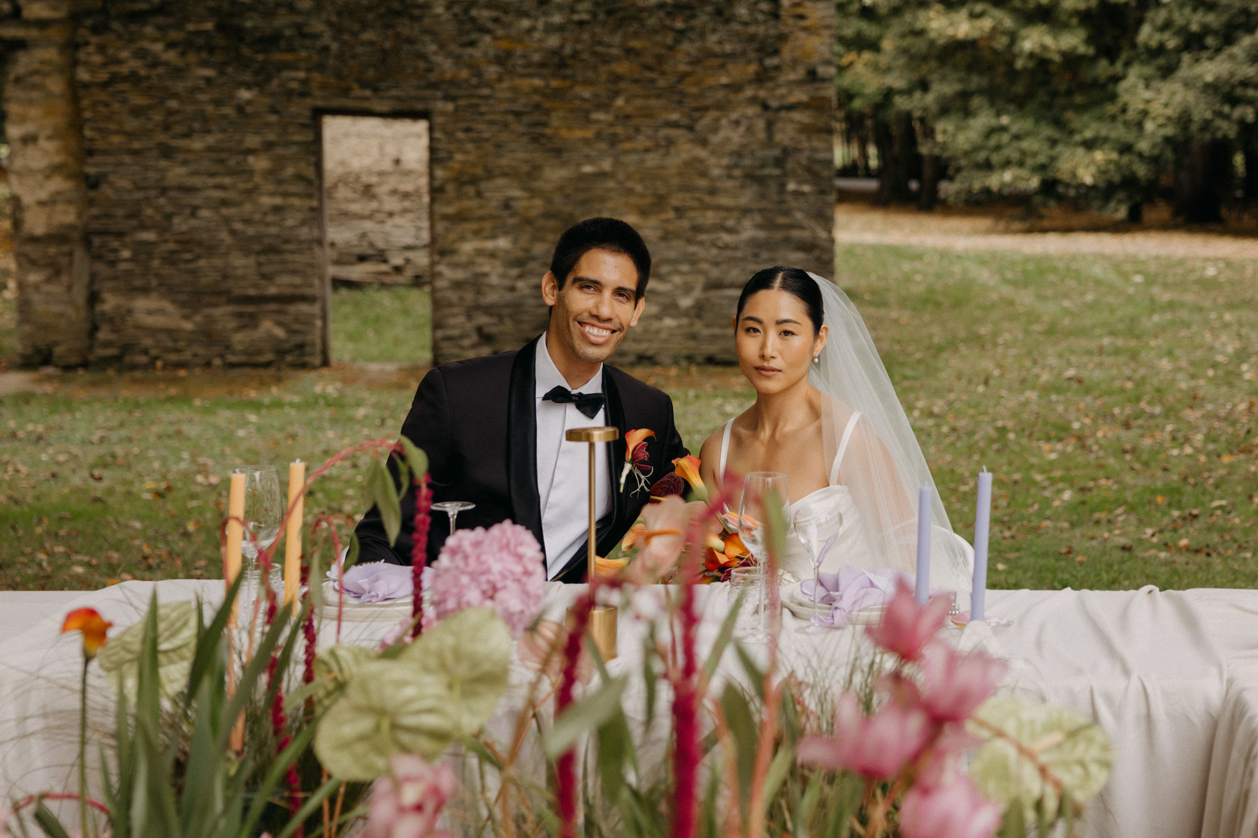 We wanted to embrace the vibrant, fleeting beauty of Queenstown in autumn. Inspired by the warm hues of falling leaves, the concept focused on bold colour and soft movement, bringing modern energy to a classically romantic setting. Every element was chosen to feel fresh, textural, and unexpected, all while honouring the natural beauty of the domain.