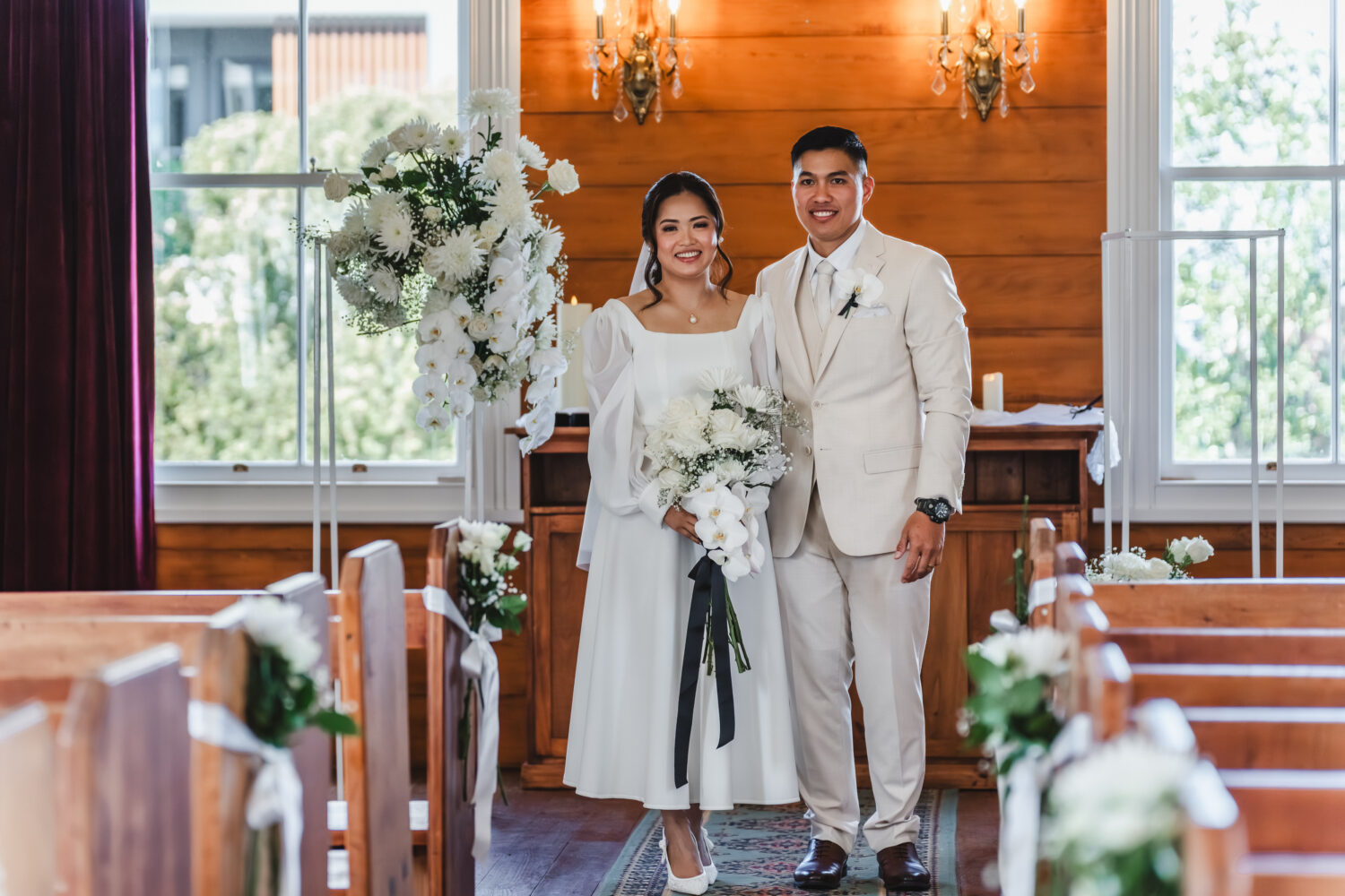 Lucky in Love create all-inclusive small weddings Auckland at The Little White Chapel ~ where everything is thoughtfully done-for-you. Enchanting venue, heartmelting ceremony, champagne tower, dreamy florals, pro photography, delish cake and all the divine details to make your day legendary.