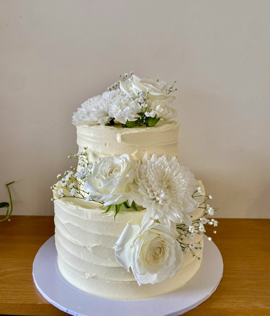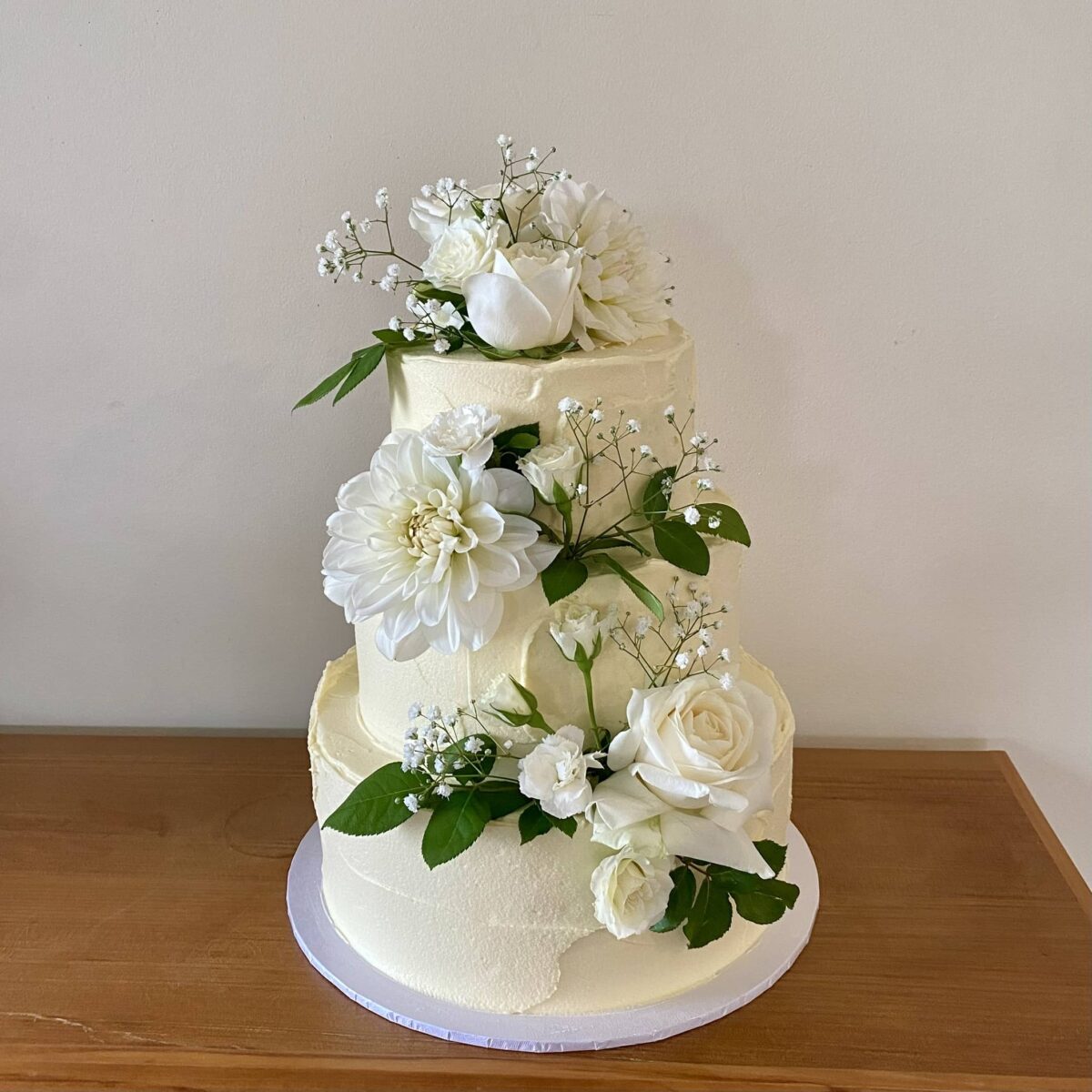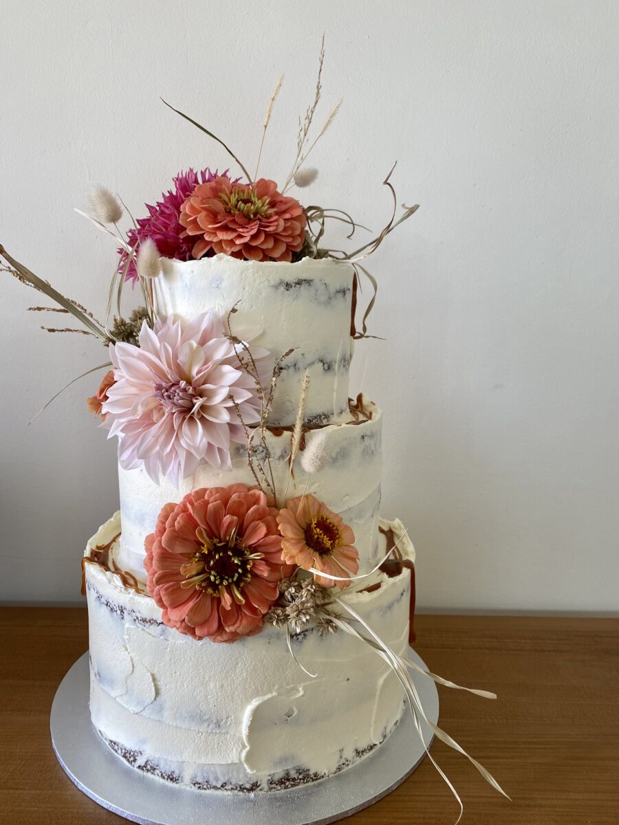 All my cakes are iced with flavour-packed buttercreams and decorated with a mix of fresh flowers, foliage, freeze-dried berries, homemade coulis, nuts, caramels, and curds. The result is a cake that feels natural, beautiful, and one-of-a-kind.