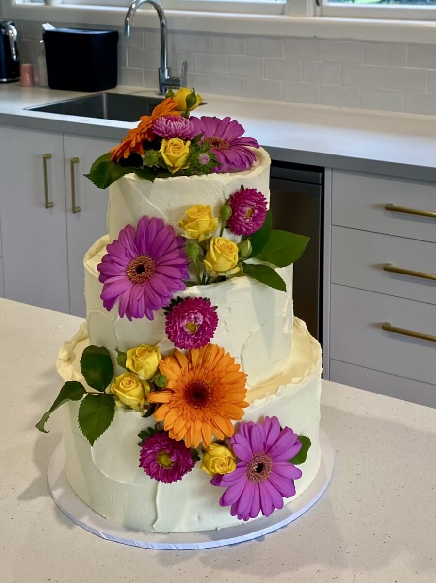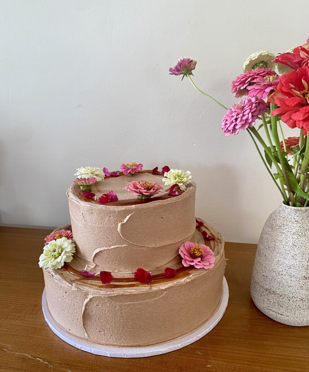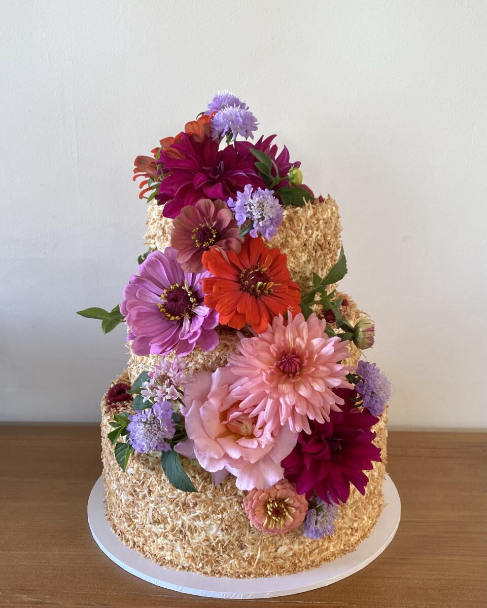 All my cakes are iced with flavour-packed buttercreams and decorated with a mix of fresh flowers, foliage, freeze-dried berries, homemade coulis, nuts, caramels, and curds. The result is a cake that feels natural, beautiful, and one-of-a-kind.