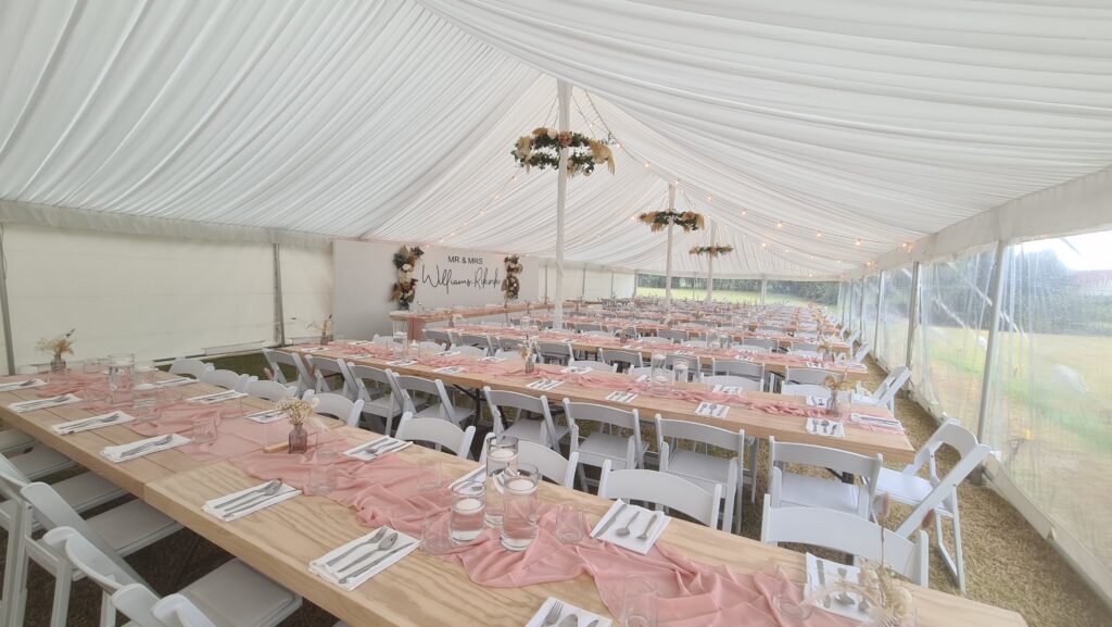 Our marquee hire range in Auckland includes silk lined deluxe pavilion marquees, clear wedding marquees, party tents and extra large hire marquees that seat 1000 guests for larger events and festivals. Planning a wedding on a remote location? No problem.