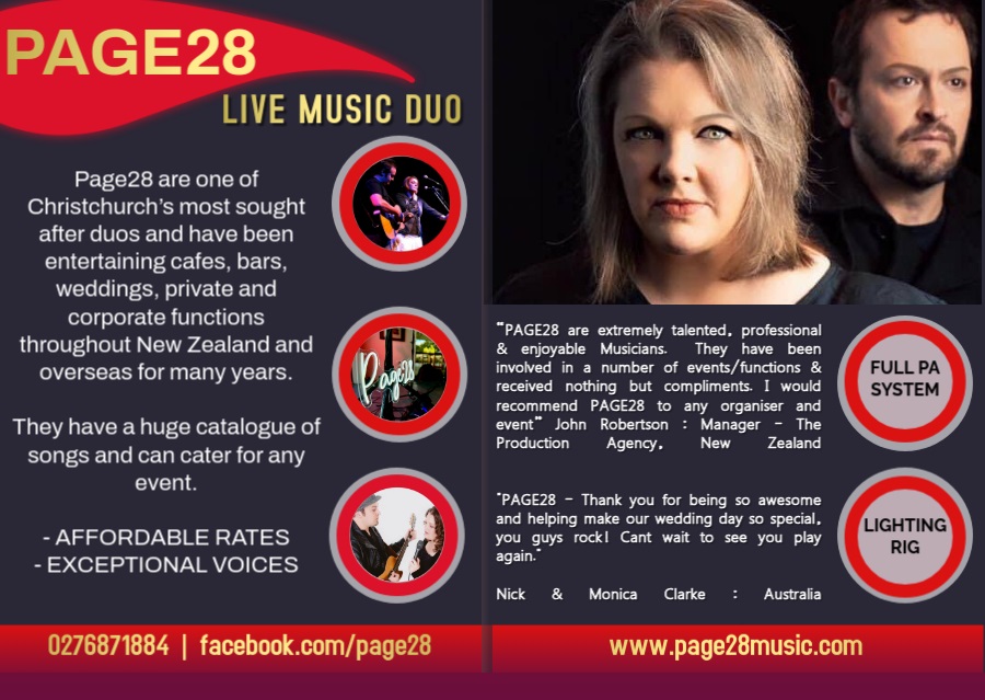 Overall, Page28 is a highly recommended musical duo for events in Christchurch, known for their exceptional talent and ability to create a memorable experience.