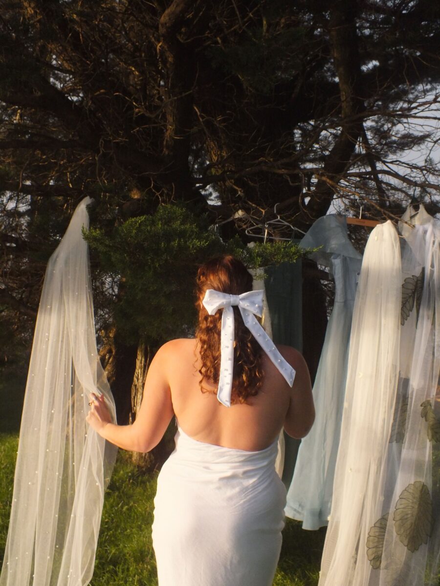 At Tigerlily veils I also specialize in bridal capes, bows and buttery soft satin scarfs