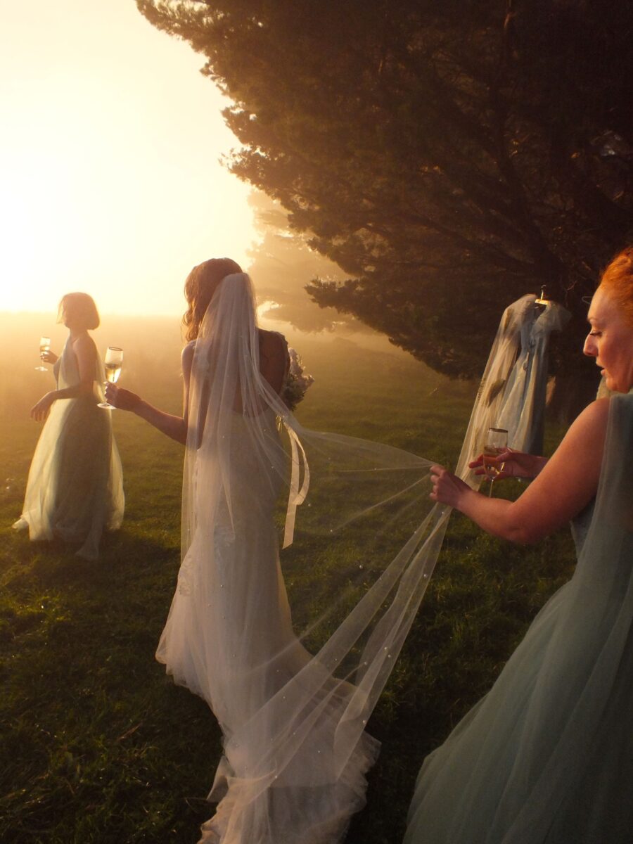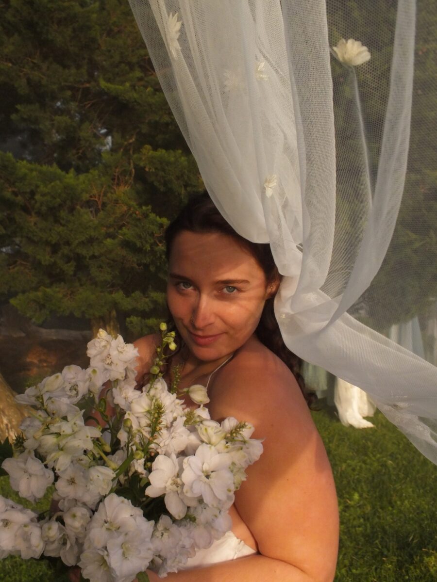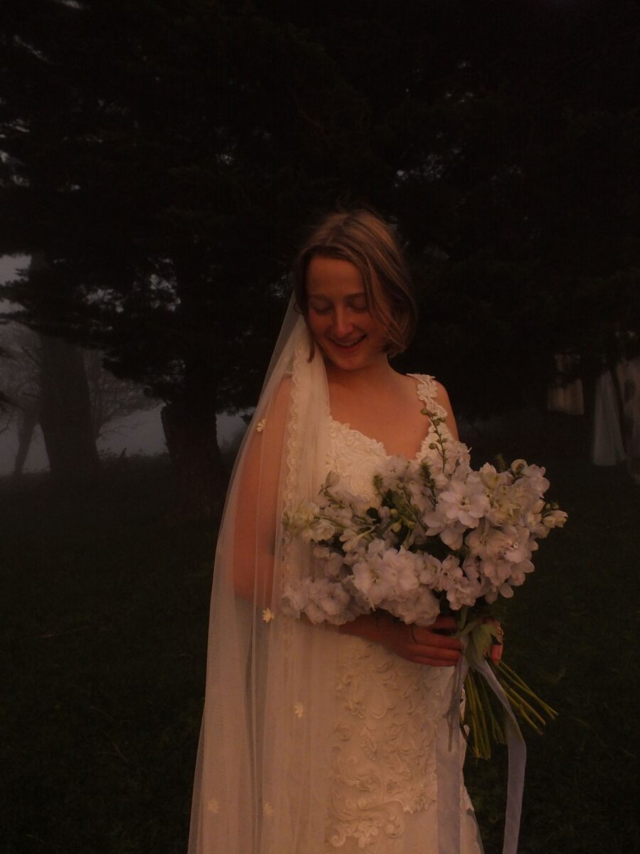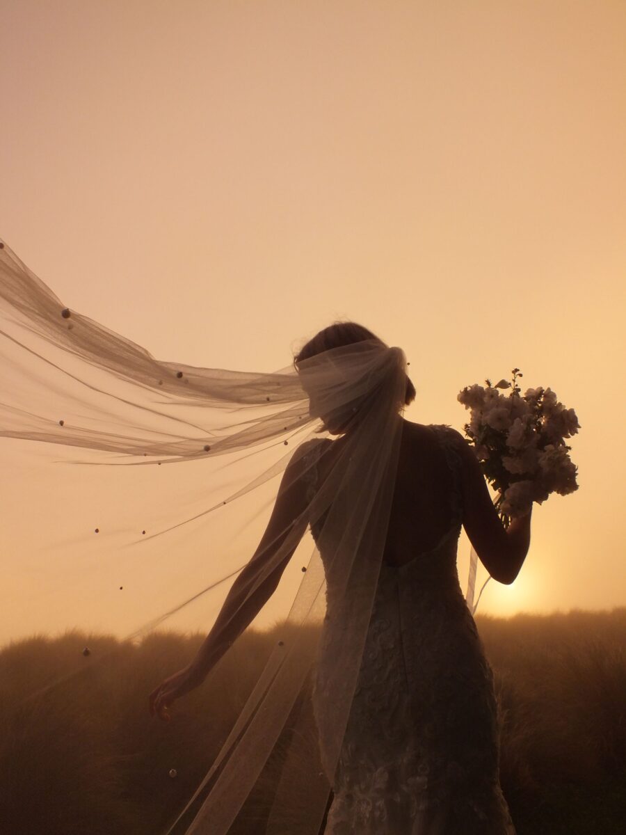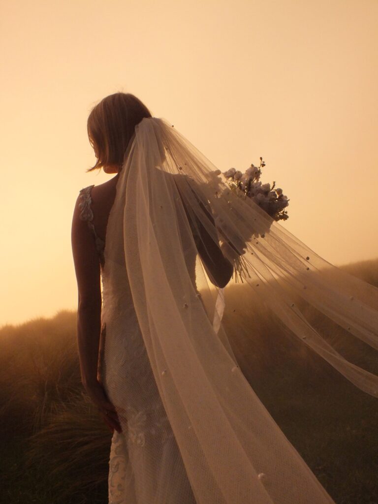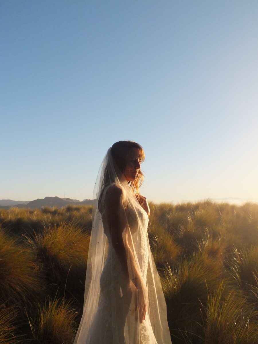 Using textures such as pearls, lace leaves, feather trim and coloured tulle, I create a one of a kind Tigerlily Veil.