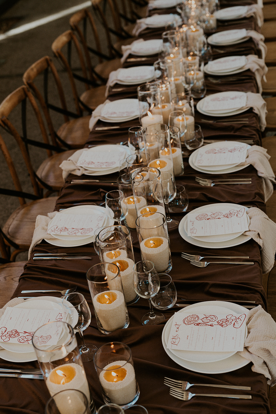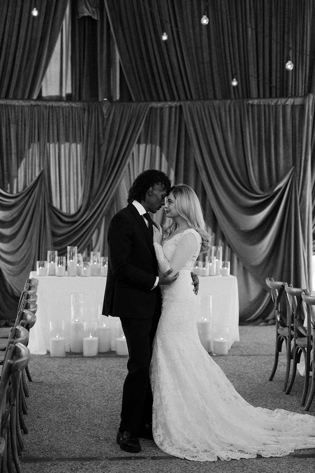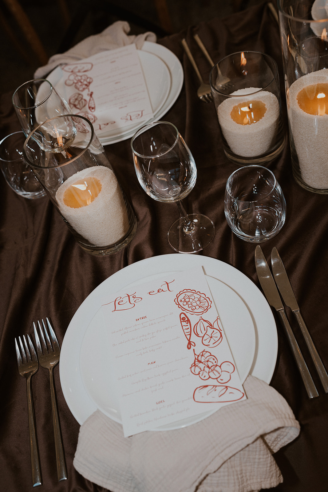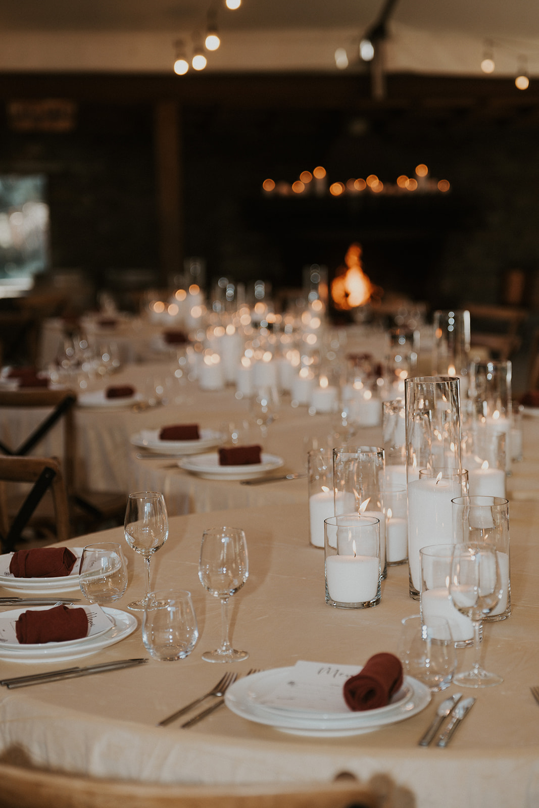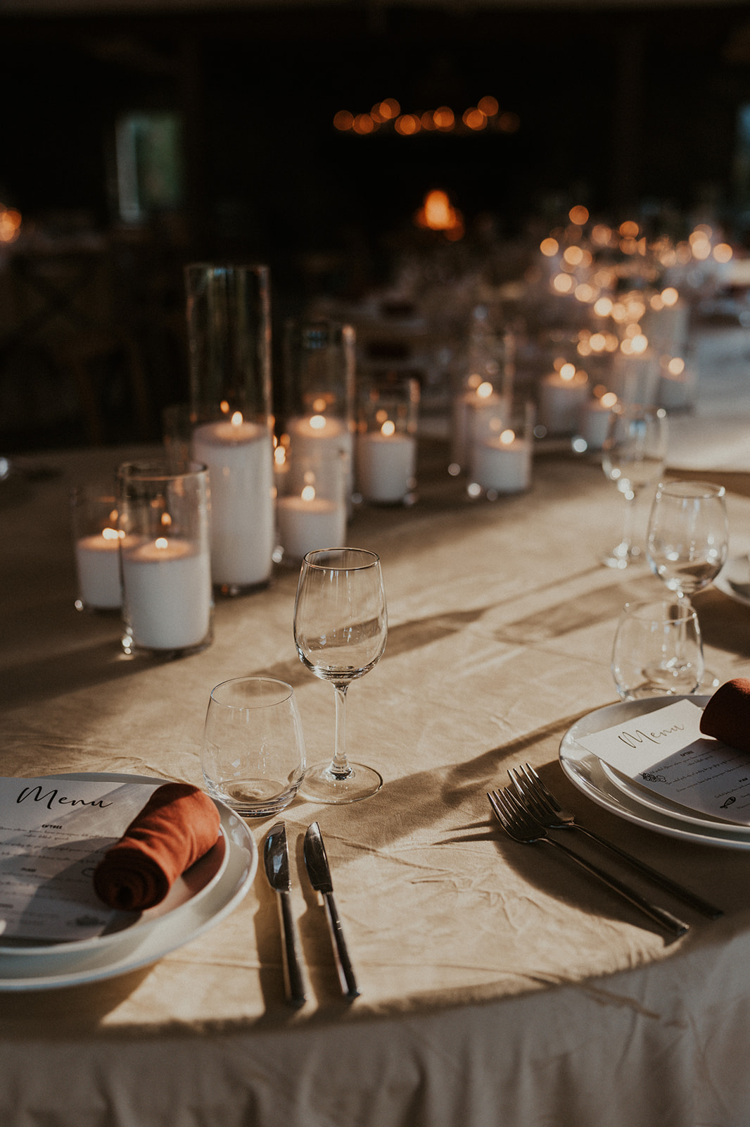 Florals take a back seat here, with candles doing all the work. Different heights, soft glow, simple styling. It’s proof you don’t need to overdo it to create impact, especially for a moody winter wedding where lighting is everything.